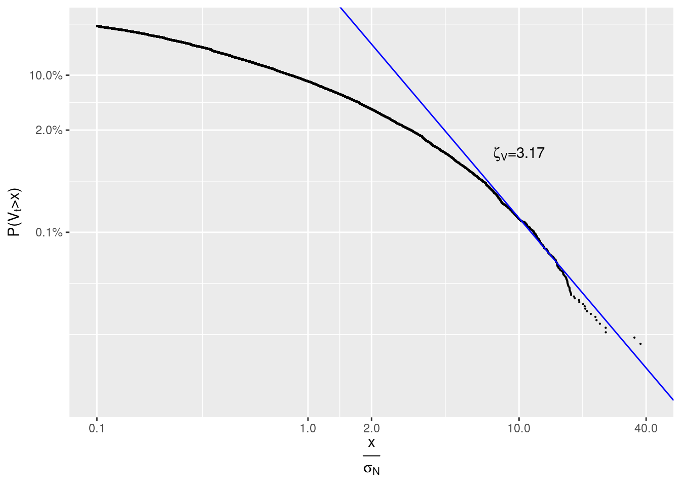 scale_y_log10(TeX('$P(V_t > x)$'),
